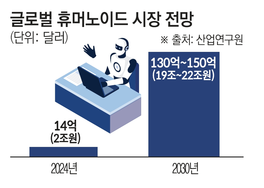 1일 산업연구원에 따르면 전 세계 휴머노이드 시장은 지난해 약 14억 달러(약 2조 원)에서 2030년 130억~150억 달러(19조~22조 원)로 10배 가까이 커질 전망이다. 테슬라는 휴머노이드 로봇 옵티머스(Optimus)를 텍사스 기가팩토리 조립공정 일부에 투입했고, BMW는 협력 중인 피겨(Figure)의 ‘Figure 02’를 스파턴버그 공장에 배치해 부품 운반과 조립 보조 공정을 테스트 중이다. 메르세데스-벤츠도 앱트로닉(Apptronik)과 개발한 로봇을 물류·자재 이송 공정에 적용하고 있다.