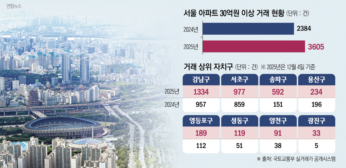 서울에서 한 채에 30억 원이 넘는 고가 아파트 거래가 크게 증가했다. '똘똘한 한 채'에 대한 선호가 강해진 데다 현금 자산가 중심의 거래 환경이 조성된 영향으로 풀이된다.