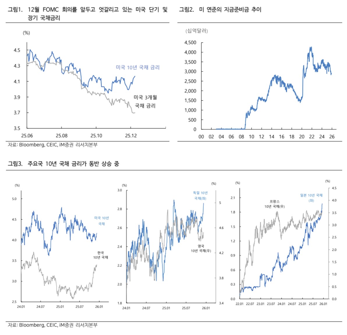 iM증권은 9일 보고서를 통해 “12월 FOMC에서 매파적 색채가 강한 금리 인하가 이뤄지더라도 단기 국채 매입 여부와 이후 주요국 장기 금리의 안정 여부에 따라 시장 충격이 크게 달라질 수 있다”며 이같이 진단했다.