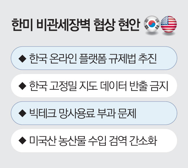 여기에 구글의 지도 데이터 반출 요구와 망 사용료 문제까지 겹치며 디지털 주권을 둘러싼 양국의 줄다리기가 팽팽할 전망이다.