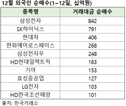 14일 한국거래소와 연합뉴스에 따르면 외국인은 이달 1~12일 코스피 시장에서 3조471억 원어치를 순매수했다.