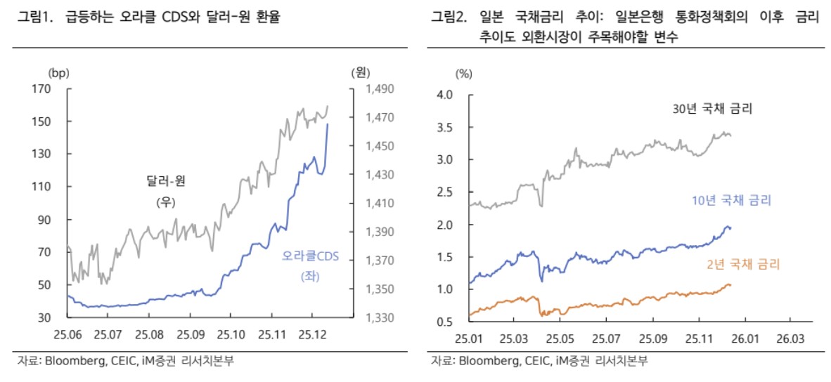 주요 통화 흐름은 엇갈렸다. 유로화는 FOMC의 안도감에 더해 유럽중앙은행(ECB) 일부 인사의 2026년 금리 인상 가능성 언급 등이 겹치며 강세 분위기를 이어갔다. 반면 엔화는 달러 약세와 일본은행(BOJ) 금리 인상 기대에도 불구하고 일본 재정 리스크 우려가 부각되면서 약세를 보였다는 평가다.