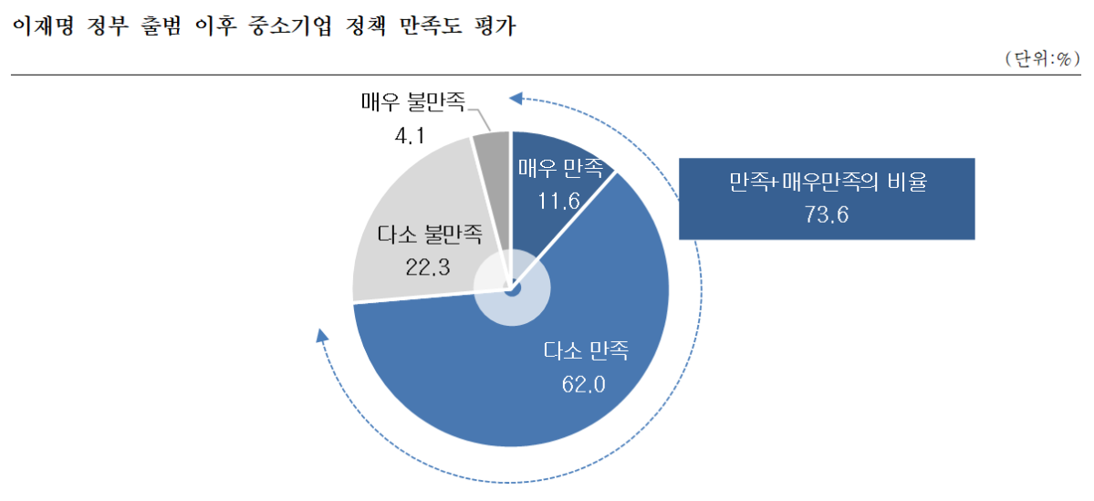 중소기업 10곳 중 7곳이 이재명 출범 이후 중소기업 정책에 만족하는 것으로 나타났다.
