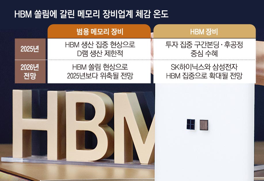 업계에서는 내년에도 HBM과 범용 D램 간 양극화가 이어질 가능성이 크다고 보고 있다. 반도체 장비 업계의 한 관계자는 “올해는 메모리 전공정 투자가 많았던 영향으로 관련 기업들의 실적이 개선됐다”며 “내년부터는 HBM 확대 흐름 속에서 후공정 장비에 대한 기대감이 점차 커지고 있다”고 말했다.