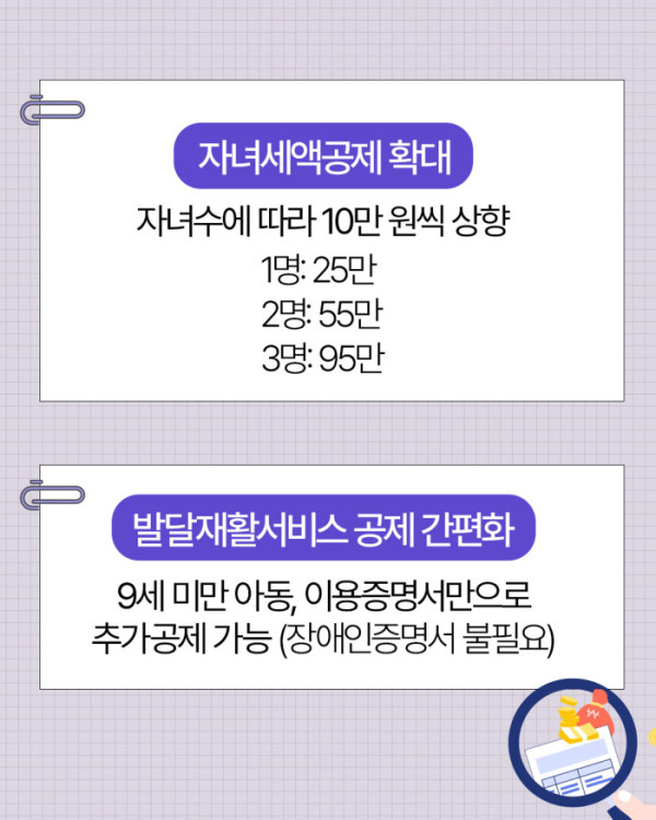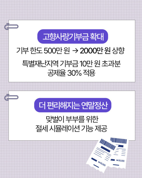 내년 초 시행되는 2025년 귀속 연말정산은 다양한 공제 및 감면 제도가 시행된다. 자녀 세액공제 금액이 확대되고 무주택 세대주 배우자의 주택마련저축 납입액에 대한 소득공제도 신설된다.