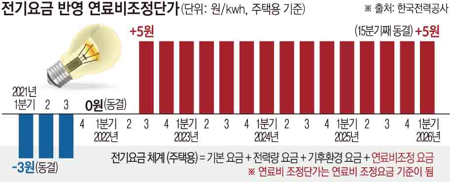 이 가운데 매 분기 시작 전달의 21일까지 정해지는 '연료비 조정단가'는 단기적인 에너지 가격 변동을 시차를 두고 요금에 반영하기 위해 도입된 제도다.