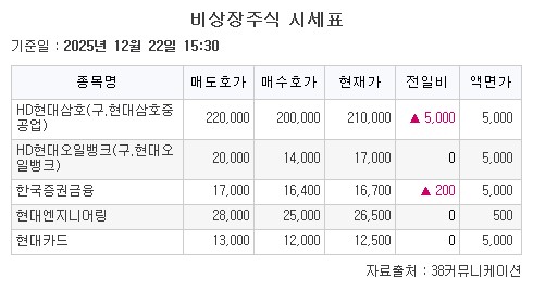 현대중공업 계열 조선기업 HD현대삼호(구.현대삼호중공업)는 호가 21만 원(+2.44%)으로 상승했다.