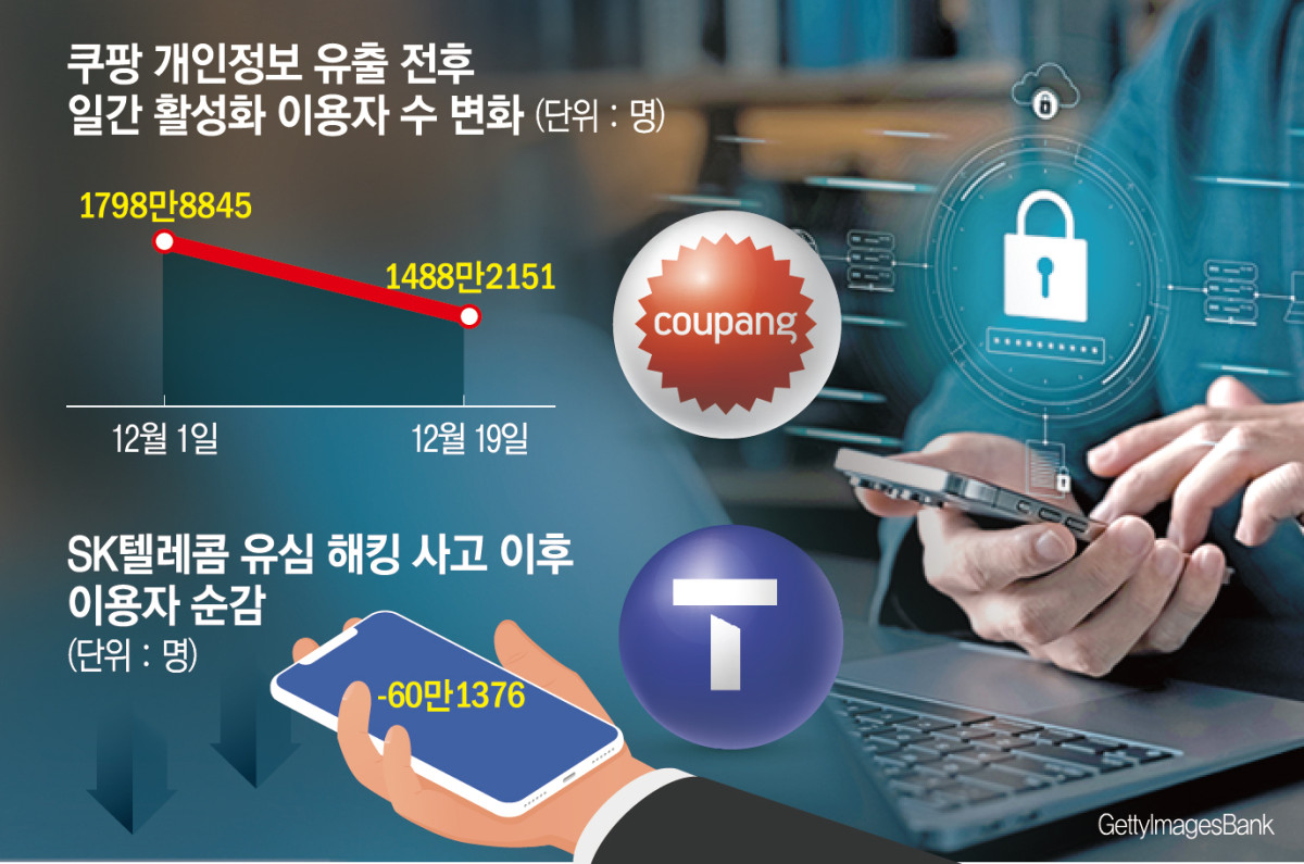 최근 개인정보 유출 사태가 발생한 기업들은 주가 폭락을 겪었다. 쿠팡은 일간 활성 이용자 수(DAU) 추정치는 두 달 만에 1400만 명대로 떨어지는 등 ‘탈팡’ 흐름도 감지됐다. 앞서 SK텔레콤의 경우 해킹 사태를 발표한 이후 83만 5214명이 번호이동으로 이탈했으며 60만 1376명이 순감했다. SKT의 지난 3분기 연결 기준 영업이익은 484억 원으로 지난해 동기보다 90.9% 감소했다.