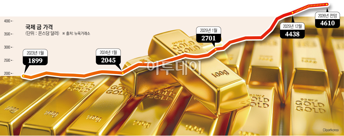 글로벌 금융사들은 올해 금값이 온스당 평균 4610달러(약 667만 원)까지 오를 것으로 전망했다. 지난해보다 상승 폭은 크게 줄어들 것으로 보면서도 사상 최고치를 계속 경신해나갈 것이라는 데 입을 모았다.