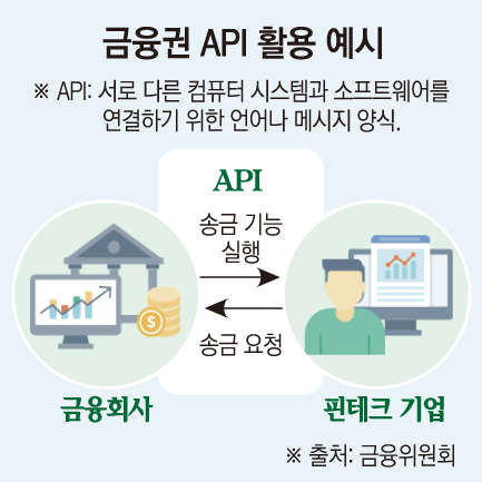 API는 은행 애플리케이션(앱) 안에서만 쓰이던 계좌 조회나 이체 같은 기능을 다른 서비스에서도 사용할 수 있게 해주는 연결 통로다. 예를 들어 여행 플랫폼에서 항공권을 예약하면서 환전과 결제를 한 번에 하거나, 부동산 플랫폼에서 전·월세 계약과 동시에 보증금 대출과 자동이체를 처리할 수 있게 하는 방식이다. 은행권에서는 일부 금융 기능을 외부에 제공해 비이자 수익을 창출할 수 있다는 점에서 새로운 먹거리로 인식하고 있다.