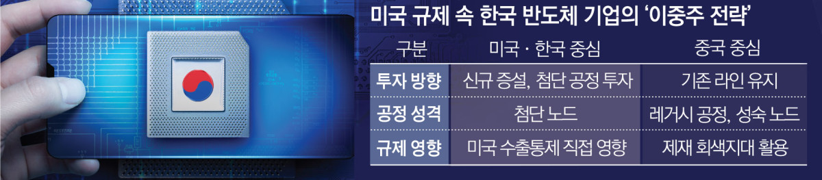 미국의 수출통제는 인공지능(AI)과 첨단 공정, 최신 장비에 집중돼 있다. 반면 레거시(구형) 공정과 성숙 노드, 기존 설비의 유지·보수 영역은 상대적으로 제재 강도가 낮다. 이 때문에 업계에서는 신규 투자와 첨단 공정은 미국과 한국으로 옮기고, 레거시 공정은 중국에 남기는 이원화 전략이 뚜렷해지고 있다는 평가가 나온다.