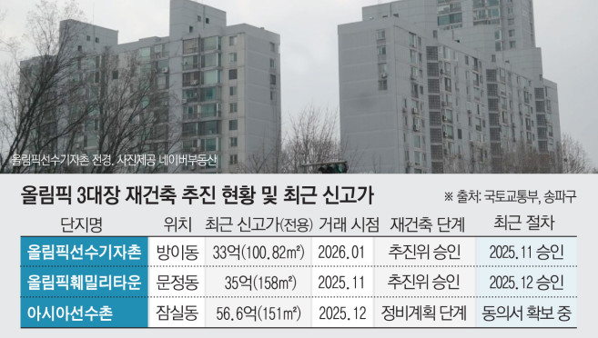 ‘올림픽 3대장’ 신고가 행진…재건축 속도감·잠실 개발 기대감에 들썩