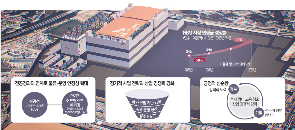 이번에 추진되는 P&T7 역시 같은 맥락에 있다. 청주 부지 내 노후 건물을 철거해 후공정 전용 시설로 전환하는 방식으로 선단 D램이나 낸드플래시 생산에는 한계가 있었던 공간을 HBM 대응 거점으로 재배치했다. 예상보다 빠르게 늘어난 HBM 수요에 맞춰 자산 활용 전략을 조정하고 전공정과 후공정을 인접 배치해 물류와 운영 효율을 끌어올리겠다는 판단이다.