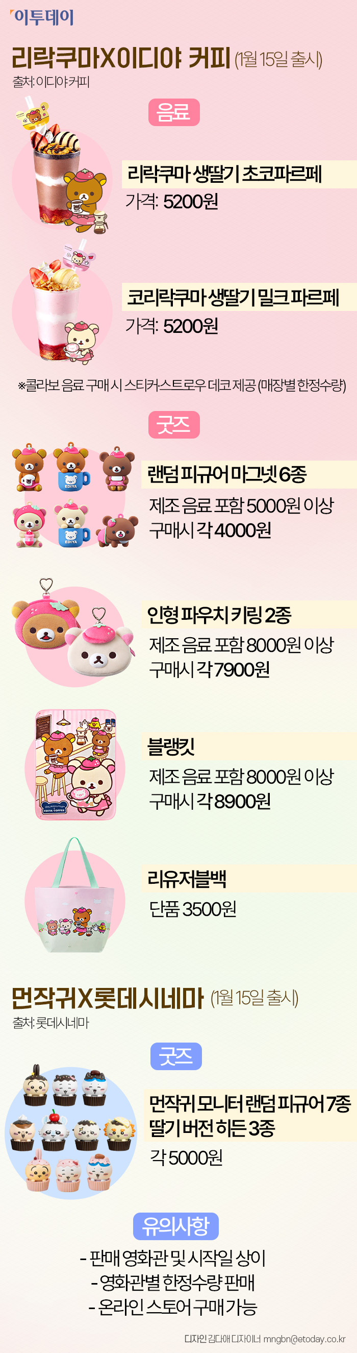 산리오 가고 리락쿠마·먼작귀 온다…이디야·롯데시네마 콜라보 [그래픽]