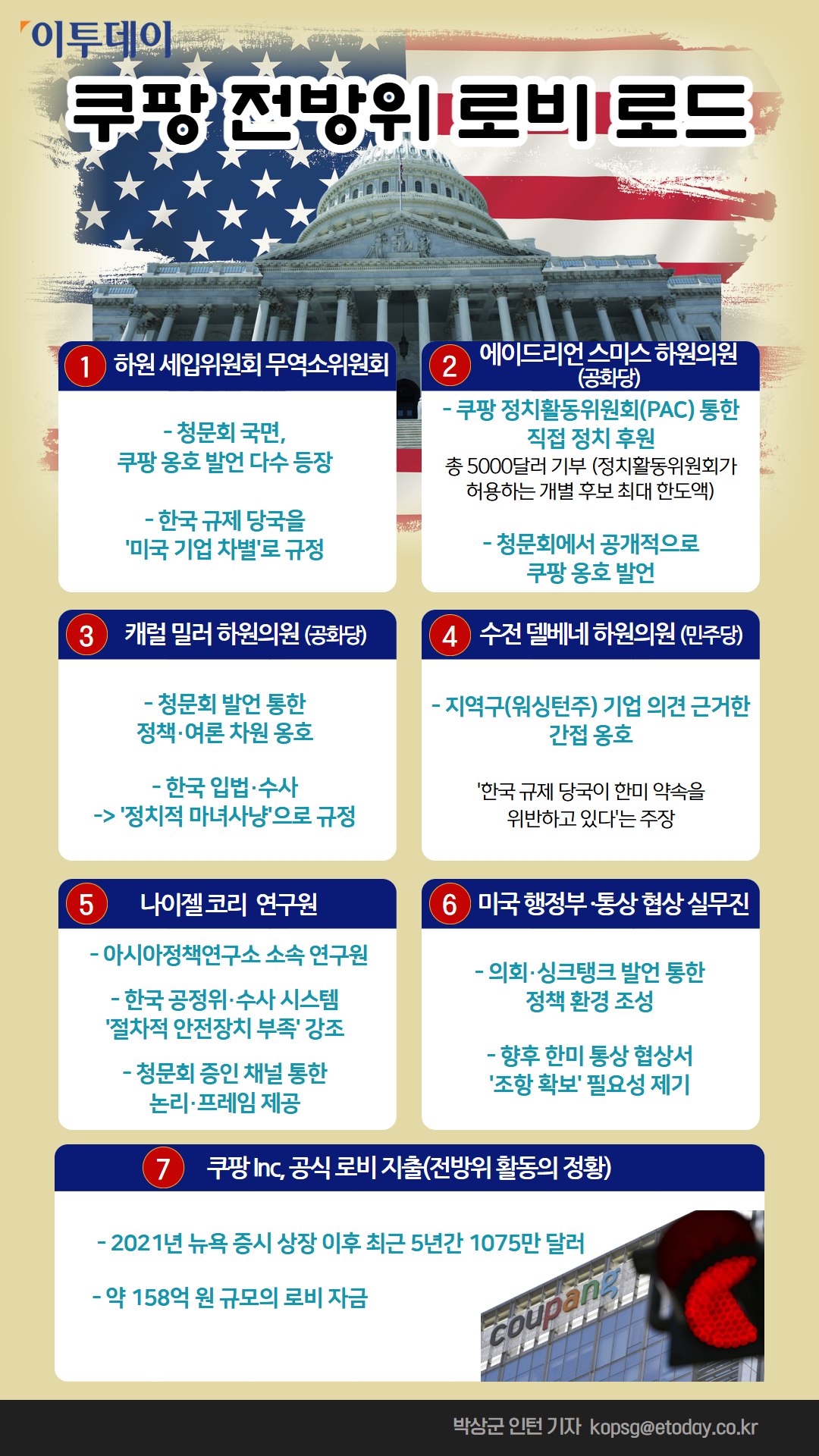 쿠팡, 美 정치권 전방위 접촉…의회부터 싱크탱크까지 [그래픽]