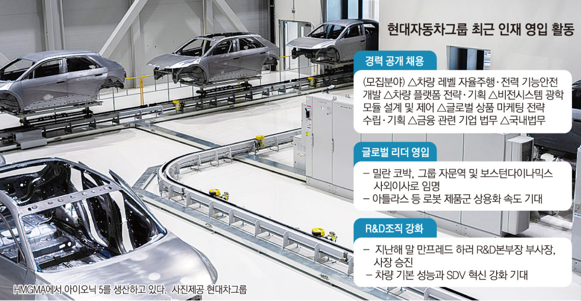 현대자동차그룹이 미래 기술 주도권 확보를 위해 인재 영입에 속도를 내고 있다. 특히 인공지능(AI)과 자율주행, 로보틱스 등 차세대 기술을 중심으로 인력 보강에 나선 모습이다. 기술 전환이 빠르게 진행되는 상황에서 인재 풀을 선제적으로 확충해 경쟁사와의 격차를 벌리겠다는 전략으로 풀이된다.