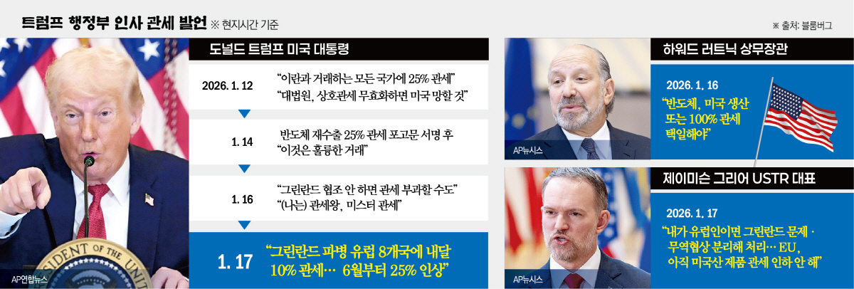 • 트럼프, 임기 2년차 첫 신호는 ‘관세 무기화’…“그린란드 파병 8개국 10% 관세”