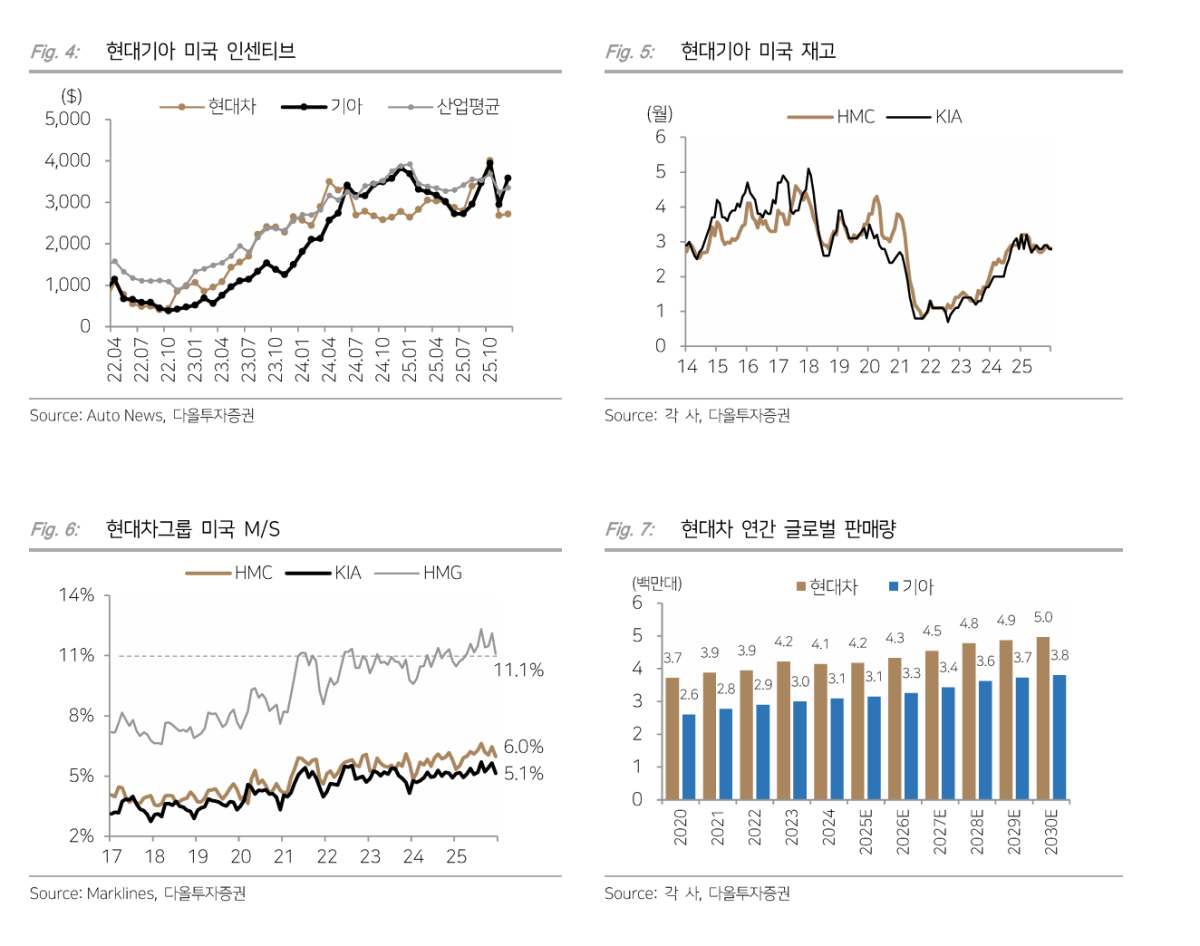 자율주행 부문 역시 주가 재평가의 촉매로 꼽혔다. 다올투자증권은 2026년 하반기 고속도로 자율주행 기술 고도화와 함께 소프트웨어 중심 차량(SDV) 전략이 가시화될 것으로 전망했다. 이에 따라 단기 실적보다는 자사주 매입과 자율주행·로봇 관련 타임라인 발표 여부에 시장의 관심이 집중될 가능성이 크다고 분석했다.