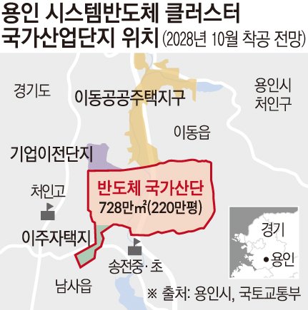 용인 반도체 클러스터는 SK하이닉스가 용인 원삼면 일반산단에 600조 원, 삼성전자가 이동·남사읍 국가산단에 360조 원을 투자하는 초대형 프로젝트다. 총 투자 규모는 1000조 원에 육박한다. 고대역폭메모리(HBM) 등 차세대 반도체 생산시설이 집적되는 국가 전략 산업으로 업계는 인허가와 인프라 구축 속도가 경쟁력의 관건이라고 본다.