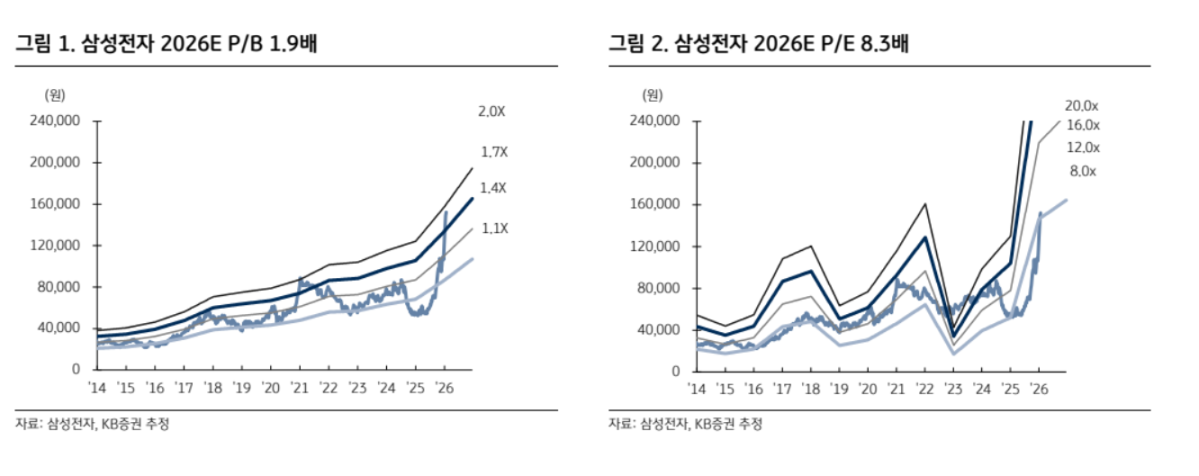 분기 실적 모멘텀도 뚜렷하다는 평가다. KB증권은 2026년 1분기 영업이익을 27조 원, 2분기 영업이익을 34조 원으로 각각 전년 대비 305%, 617% 증가할 것으로 내다봤다. 특히 올해 삼성전자의 낸드 웨이퍼 생산능력이 전년 대비 5% 감소할 것으로 전망되면서 메모리 가격 상승 탄력은 더욱 커질 것으로 분석했다.