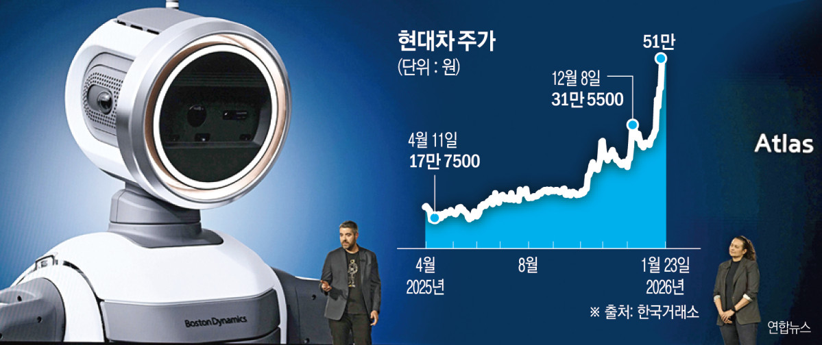 현대자동차 노조가 인공지능(AI) 휴머노이드 로봇 ‘아틀라스’의 투입에 강하게 반발하면서 노사 갈등이 새로운 국면에 들어섰다. 로봇 도입이 고용을 위협할 수 있다는 노조의 우려가 커지는 가운데, 현대차그룹의 ‘피지컬 AI’ 전략이 기업가치 상승과 주주 수익으로 이어졌다는 점에서 “노조 스스로 수혜를 입은 미래 전략에 제동을 걸고 있다”는 지적이 나온다.