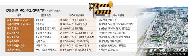 25일 정비업계에 따르면 올해 상반기 성수전략정비구역을 시작으로 압구정, 목동, 여의도까지 핵심 지역의 수주전이 잇따를 전망이다. 정비사업 수주 규모는 70조~80조 원 수준으로 전망된다. 지난해 사상 최대치를 기록한 10대 건설사 누적 수주액 48조6655억 원을 크게 웃도는 수치다.