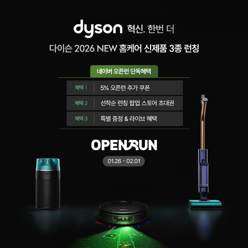 다이슨코리아가 가전 신제품 3종을 대상으로 ‘네이버 오픈런’ 기획전을 진행한다고 26일 밝혔다. 네이버 오픈런은 신제품을 가장 빠르게 만나볼 수 있도록 운영되는 네이버의 대표 캠페인이다.