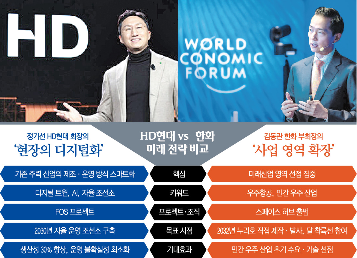 정기선 HD현대 회장이 제조업의 효율화와 스마트화를 통해 주력 사업의 경쟁력을 끌어올리는 데 무게를 둔다면 김동관 한화그룹 부회장은 산업의 무게중심이 이동하는 영역을 선제적으로 확보하는 전략에 가깝다. 방산에 이어 우주로 이어지는 한화의 사업 확장은 이러한 방향성을 가장 상징적으로 보여준다.