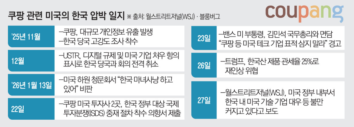 도널드 트럼프 미국 행정부가 한국 정부를 향해 자국 기술기업을 겨냥한 차별적 규제나 조사를 중단하라고 경고했다. 한미 간 무역 긴장이 재점화하는 가운데 쿠팡을 포함한 디지털 통상 이슈가 핵심 쟁점으로 떠오르고 있다.