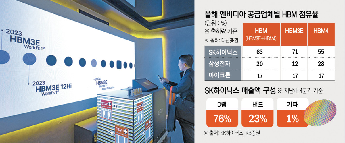 이민희 BNK투자증권 연구원은 “관련 업계의 AI 설비투자 확대 영향으로 올해 HBM 수요는 전년 대비 52% 증가할 것으로 전망된다”며 “주문형 반도체(ASIC) 수요 증가로 HBM3E(5세대) 수요는 기존 예상보다 더 커질 가능성이 있지만, HBM4(6세대) 수요는 엔비디아 중심으로 형성될 것”이라고 분석했다.