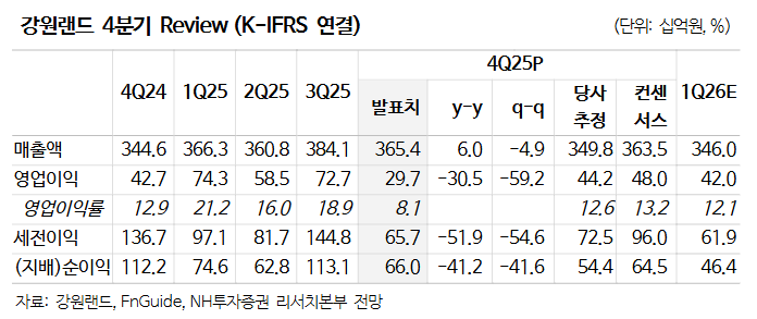 이화정 NH투자증권 연구원은 “4분기 영업비용이 예상치를 웃돌며 어닝 쇼크를 기록했지만, 2027년까지 이어질 영업장 전반의 레노베이션(개보수)은 영업환경 개선을 위한 투자 국면”이라며 “일시적인 영업 차질에도 중장기 성장 동력은 훼손되지 않았다”고 분석했다.