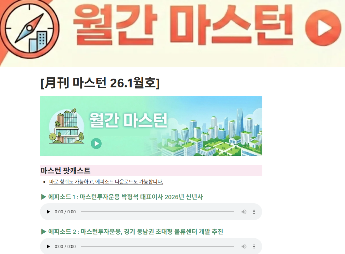 ‘월간 마스턴’은 경영전략부문 브랜드전략팀이 기획하고 운영하는 프로젝트로, ‘마스턴 팟캐스트’와 ‘마스턴 뉴스레터’로 구성된 월간 콘텐츠 플랫폼이다. 사내 주요 소식과 업계 동향을 임직원들에게 효과적으로 전달하기 위해 기획됐다.