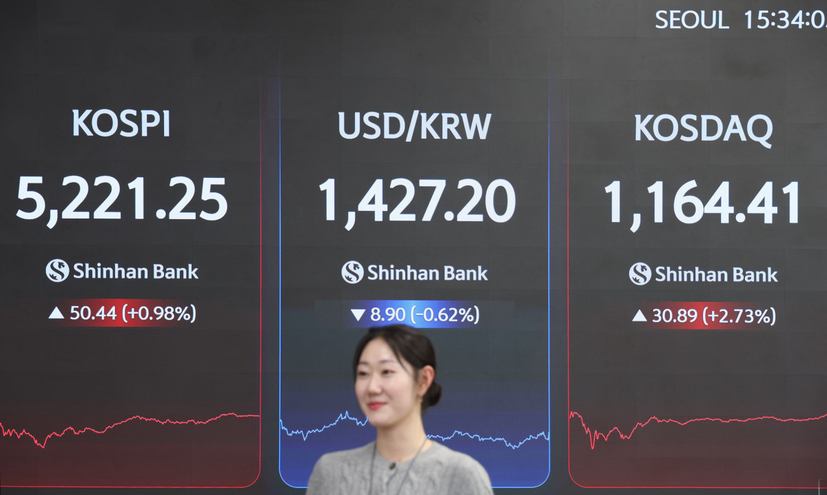 29일 코스피는 전 거래일보다 50.44포인트(0.98%) 오른 5221.25로 장을 마감했다. 이날 지수는 72.61포인트(1.40%) 오른 5243.42로 출발해 개장 직후 5252.61까지 치솟았으나 차익 실현 매물이 쏟아지며 오전 한때 5073.12까지 밀렸다. 이후 낙폭을 빠르게 만회하며 오후 들어 5200선을 재탈환했고 종가 기준 사상 최고치를 새로 썼다.