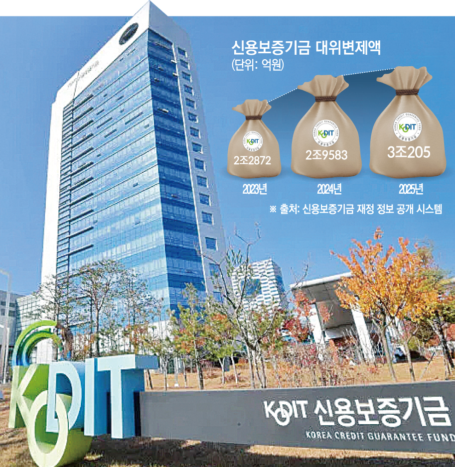 2일 신보 재정정보공개시스템에 따르면 작년말 기준 4대 대위변제액(일반보증·유동화회사보증·소상공인위탁보증·대환보증)규모는 총 3조205억 원으로 집계됐다. 2023년 2조2872억 원, 2024년 2조9583억 원으로 3년 연속 가파른 상승세다.