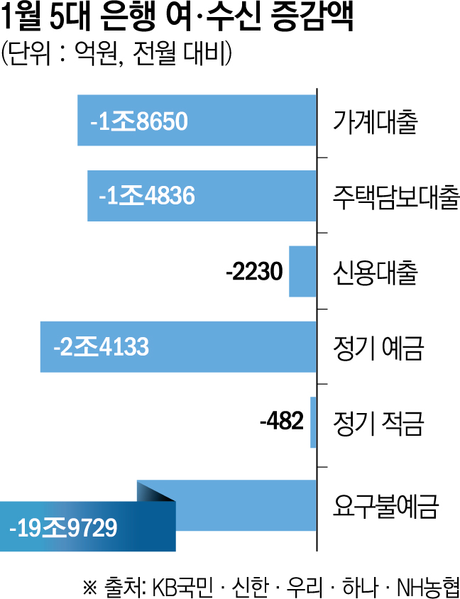 주담대 22개월 만에 줄었다…5대 은행 가계대출 감소·예금 이탈