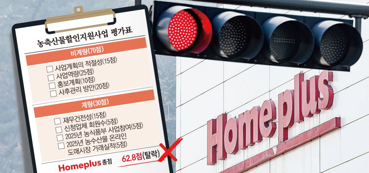 기업회생절차를 밟고 있는 홈플러스가 올해 1080억원 규모의 예산이 편성된 정부의 농축산물할인지원사업 공모에 탈락했다. 홈플러스는 심사 과정에서 정부 가이드라인(20%)을 웃도는 자체 할인율을 제시했음에도 사업 역량 부문에서 낙제점을 받았다. 홈플러스 사태가 장기화하고 있는 만큼 납품업체 보호를 위한 세심한 정책 대응이 필요하다는 지적이 나온다.