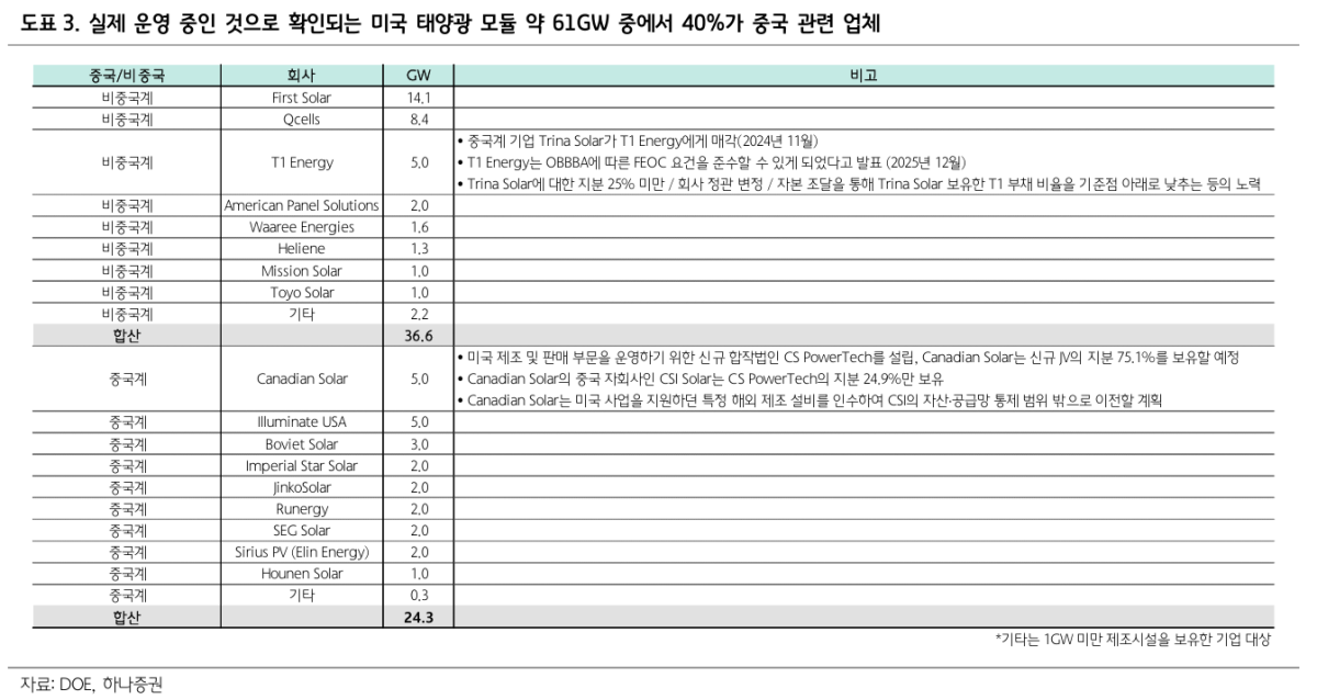 윤재성 하나증권 수석연구위원은 “태양광은 더 이상 지상 발전에 국한된 산업이 아니라 AI와 우주 인프라를 떠받치는 핵심 에너지로 세계관이 확장되고 있다”며 “중국 변수라는 리스크가 존재하지만, 한국 업체들이 차세대 태양전지에서 기술적 우위를 입증한다면 머스크의 밸류체인 안에서 새로운 기회를 확보할 수 있을 것”이라고 제언했다.