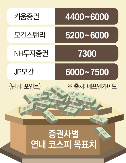 해외 투자은행(IB)의 전망도 엇갈렸다. 모건스탠리는 5200~6000을, JP모건은 6000부터 강세장이 올 경우 7500까지도 가능하다고 전망했다.
