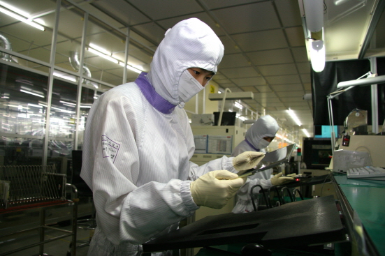 ▲삼성전자 LCD사업부의 한 직원이 노트북 패널의 외관 검사 작업을 하고 있다.