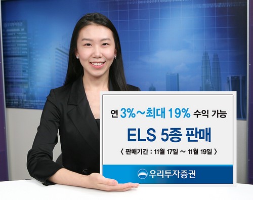 우리투자증권은 오는 19일까지 연 3~19% 수익이 가능한 ELS 5종을 공모한다고 17일 밝혔다.