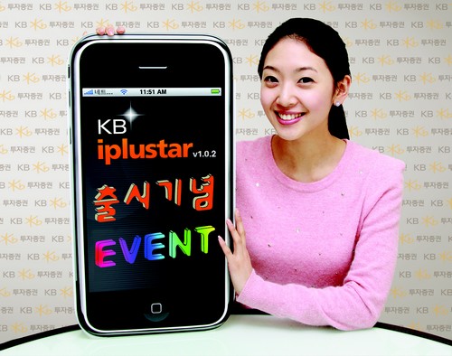 한편 KB투자증권은 지난달 27일 업계 최초로 아이폰용 증권 애플리케이션인 KB iplustar를 개발하고 앱스토어에 등록했으며 28일 하루 동안 3718명이 다운받는 등 현재까지 총 1만8500여명의 아이폰 사용자들이 KB iplustar를 다운받은 것으로 집계되는 등 아이폰 사용자들의 높은 관심을 보여주고 있다고 밝혔다. KB투자증권은 지난 1일 아이폰을 통한 주식 트레이딩을 위한 모든 절차를 마쳤으며 애플사의 승인을 받는 대로 트레이딩 서비스도 제공할 예정이다.