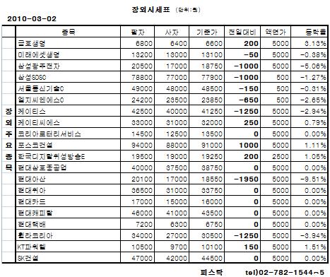 장외 주요종목들은 2일 업종별로 혼조세를 보였다.