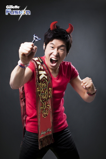 영국 맨체스터 유나이티드에서 활약 중인 박지성이 현지에서 질레트 퓨전 광고 촬영장에서 머리에 뿔 달린 붉은악마로 변신했다. 그는 자신의 이름이 새겨진 머풀러까지 어깨에 두른 채 포효하는 듯한 장난스런 표정을 연출했다.
