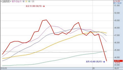 이들 두 업종은 전일에도 4% 가까이 급락하는 등 유럽발 금융위기 우려란 악재의 직격타를 맞았다.