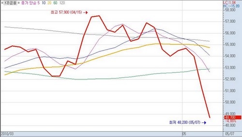 유럽발 쇼크에 국내 금융시장이 패닉상태로까지 번진 7일 오전 10시 현재 은행업종 지수는 전일보다 4.62% 떨어지면서 코스피시장의 전 업종 중 가장 큰 낙폭을 보이고 있다. 또한 금융업 역시 4.33% 하락하면서 그 뒤를 잇고 있다.