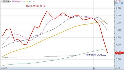 유럽發 금융위기의 확산 우려에 직격탄을 맞은 국내 금융주들이 추풍낙엽처럼 힘 없이 급락하고 있어 이를 저가매수 기회로 활용해도 될지에 대한 관심이 집중되고 있다.