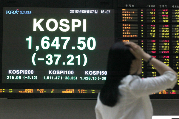 유럽발 재정 쇼크가 금융시장을 강타한 가운데 7일 코스피 지수가 전날에 이어 37.21포인트 급락했다.