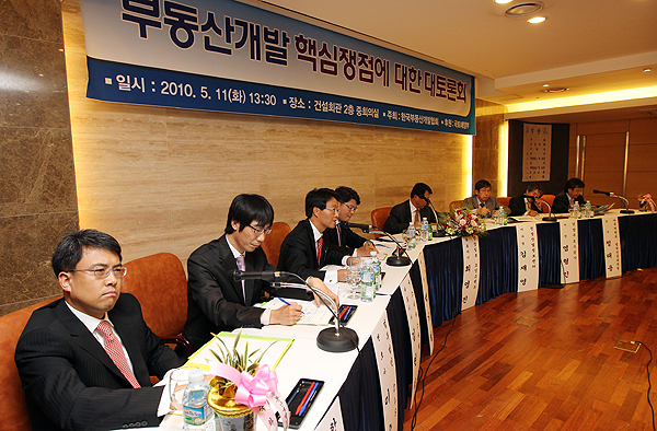 11일 오후 논현동 건설회관에서 열린 '부동산개발 핵심쟁점에 대한 대토론회'에서 토론자들이 발제를 하고 있다.