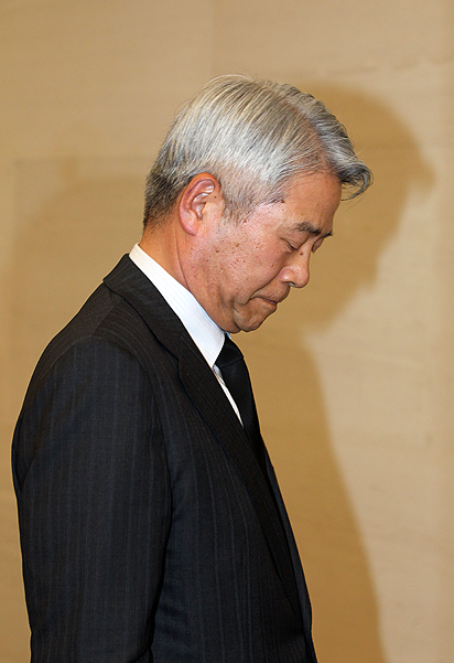 동양그룹 현재현 회장이 12일 오후 서울 신촌 세브란스 장례식장에 마련 된 故 박인천 금호아시아나그룹 회장의 부인인 이순정 여사의 빈소 조문을 위해 들어오고 있다.