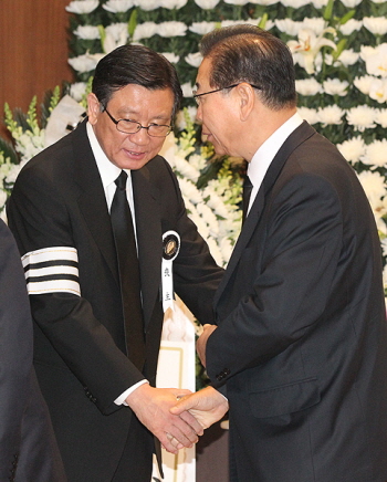 오후 8시40분께 빈소에 도착한 정 회장은 조 회장에 이어 두 번째로 영정에 헌화하고 박삼구 명예회장을 비롯한 유가족을 위로한 후 빈소 옆에 마련된 응접실에서 함께 온 회장단과 잠시 환담을 나눴다.